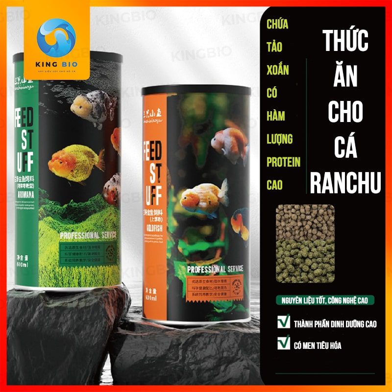 Thành phần gồm bột cá, bột nhuyễn thể (tôm đỏ), bột đậu nành, tinh bột, bột rong biển, tảo xoắn, vi khuẩn axit lactic, men tiêu hóa, axit amin, bột đậu nành, khoáng chất hữu cơ , mầm lúa mì, tinh chất tỏi, protein thực vật, beta-carotene, vitamin A, vitamin B1, vitamin E, L-ascorbic acid-2-phosphate, L-lysine, v.v. Hỗ trợ hệ tiêu hóa, kích size và tăng màu cho cá vàng.