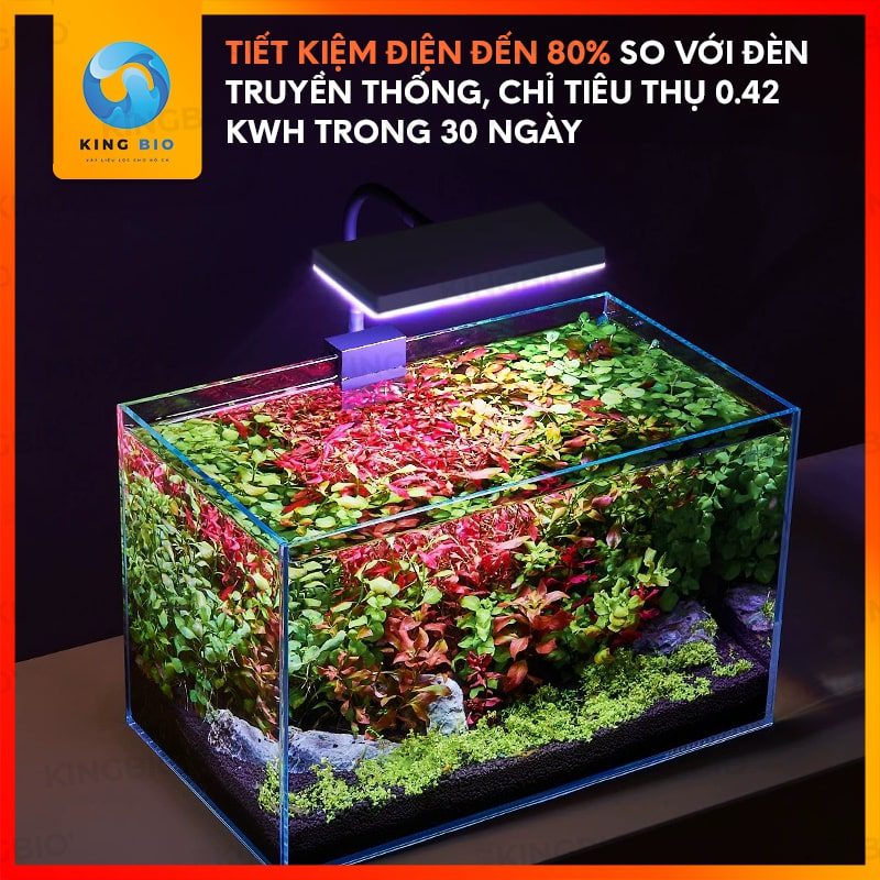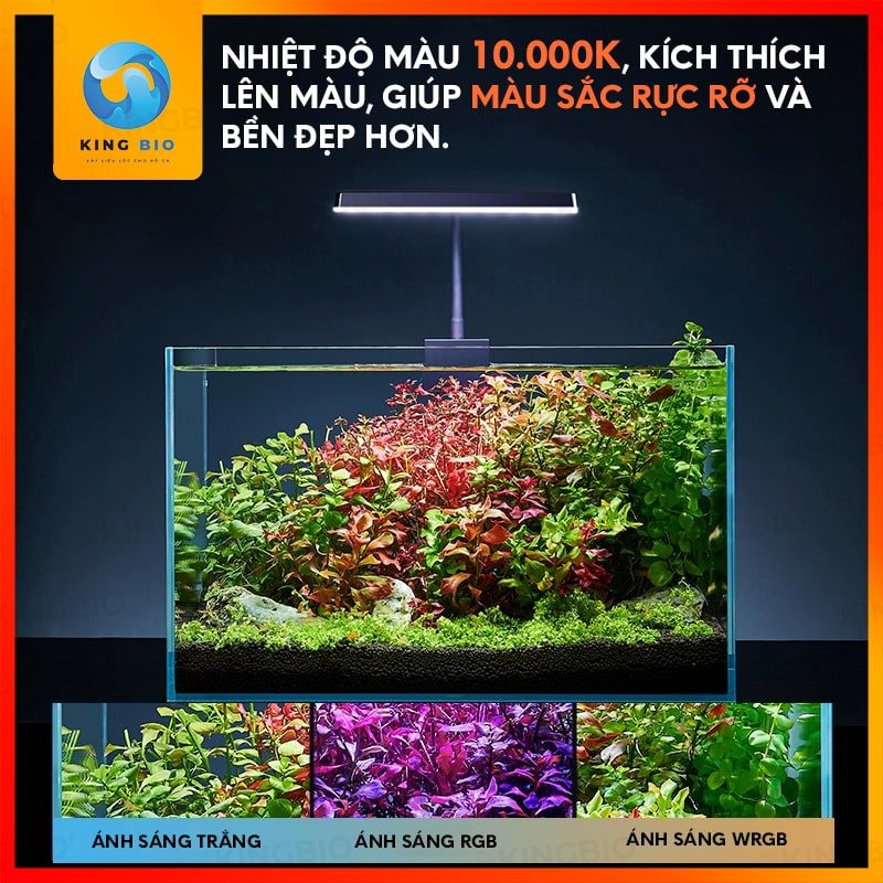+ Ánh sáng trắng chuẩn thủy sinh 10.000K: Giúp cây phát triển khỏe mạnh, tăng cường quá trình quang hợp.