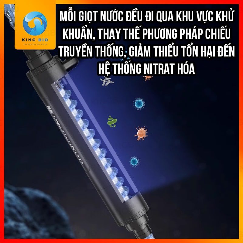 + Tương thích với hệ thống lọc: Đèn được gắn ngoài hệ thống lọc, hỗ trợ tiêu diệt vi khuẩn mà không làm ảnh hưởng đến hệ vi sinh trong bể.
