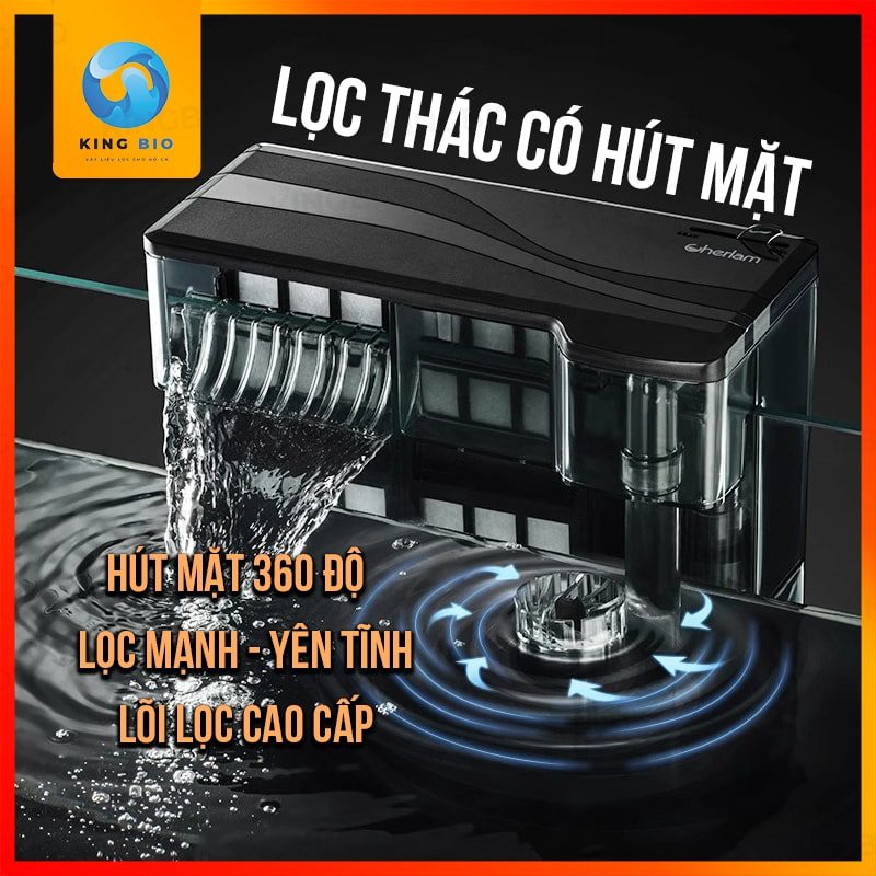 Máy lọc thác bể cá Cherlam còn gọi là lọc treo là một hộp lọc nhỏ gọn có tích hợp sẵn bơm nước, thích hợp sử dụng cho các bể cá thủy sinh nhỏ dưới 50cm. Với thiết kế nhỏ gọn, dễ dàng tháo lắp và vệ sinh thường được treo trực tiếp trên bể cá. Khi có quá nhiều tạp chất trong nước, hộp lọc có thể sẽ bị tắc. Đầu vào của lọc nước được trang bị thiết kế chống tràn giúp thoát trực tiếp từ lỗ chống tràn khi bị tắc, rất an toàn và chắc chắn cải thiện hiệu quả lọc và nuôi cấy vi khuẩn tốt hơn.