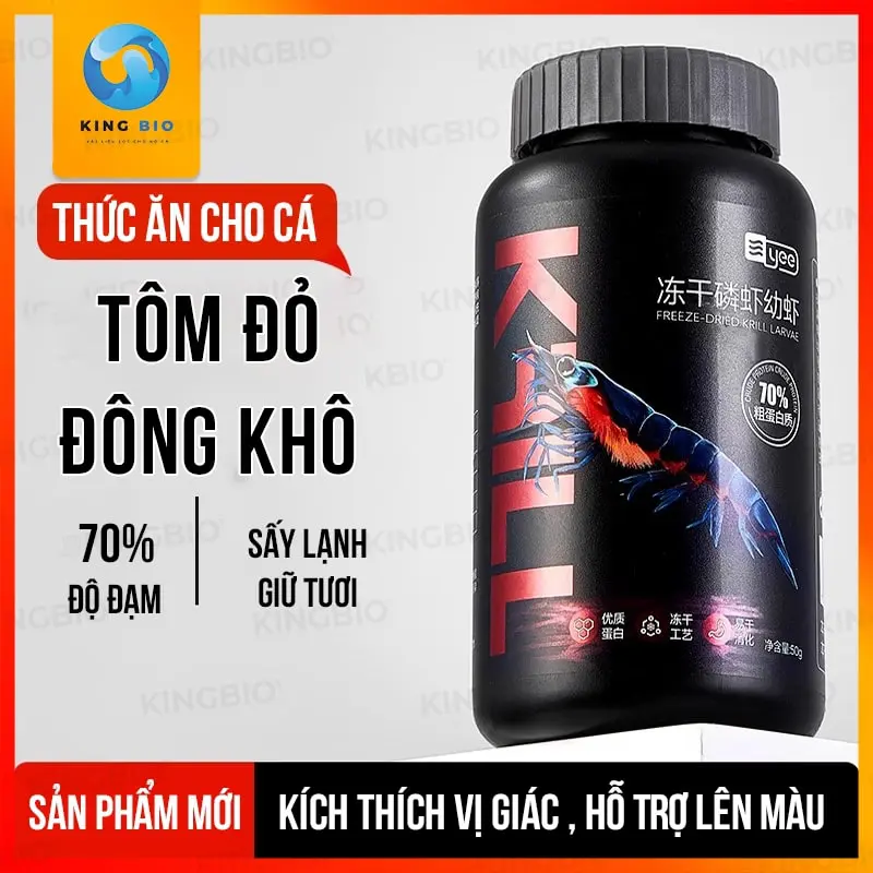 Tôm đỏ đông khô Yee Krill thức ăn dinh dưỡng cao dành cho cá cảnh và rùa cảnh. Đảm bảo tồn tại hơn 90% chất dinh dưỡng trong tôm, hàm lượng Astaxanthin gấp 9 lần so với tôm thường. Tôm đỏ Yee được sản xuất với điều kiện vô trùng và đông lạnh nhanh, giữ hoàn toàn hương vị tươi của tôm.