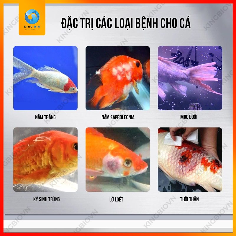 + Khử trùng vết thương: Khử trùng nhanh chóng các vết thương ngoài da, lở loét, giúp cá phục hồi nhanh chóng.